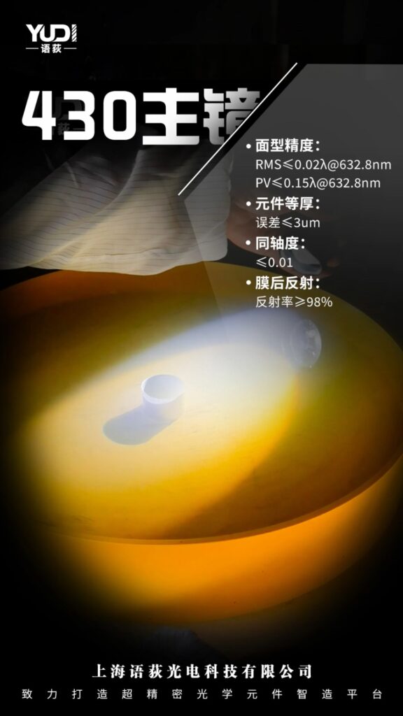 这是一套410mm主次镜系统,微晶材料。主镜设计以大口径和高精度曲面为特点,主要用于捕捉天体光线,而次镜则负责将光线精确聚焦至焦平面,以实现清晰成像。整个制造过程包括多个关键步骤,如主次镜的精细加工、光学镀膜和精密组装等。借助先进的数控加工设备和精密测量技术,我们确保了主次镜系统的曲面精度和光学性能均达到最高标准。这套410mm主次镜系统在天文观测、天体摄影和光学成像等多个领域发挥着重要作用,展现了我们在高精度光学元件制造方面的专业能力和技术实力。